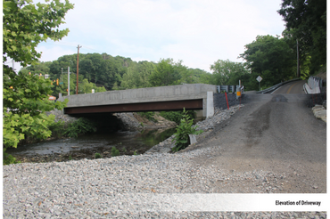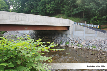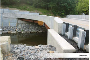 The Final structure is a 73'-6" span with a reinforced concrete deck on five steel plate girders with three steel plate kicker beams on caisson abutments. The structure has two travel lanes with varying width (12'-0" minimum), two 2'-0" shoulders, and one 5'-0" downstream sidewalk. With a 1'-0"-wide concrete wall barrier on both sides of the bridge, the total minimum out-to-out bridge width will be 35'-0" along the tangent section. Also constructed for this project were Soldier Pile and Lagging Walls and Wing Walls along Elfinwild Road.